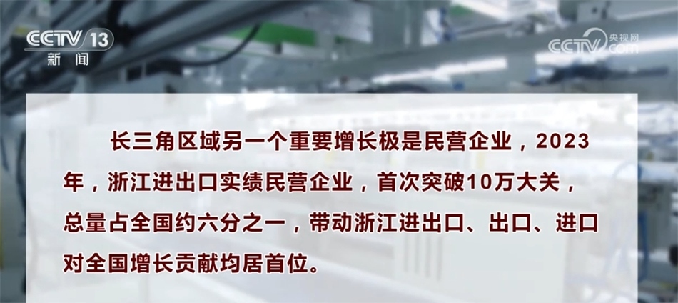 長三角區(qū)域另一個重要增長極是民營企業(yè),2023年,浙江進出口實績民營企業(yè)首次突破10萬大關(guān),總量占全國約六分之一,帶動浙江進出口、出口、進口對全國增長貢獻均居首位。