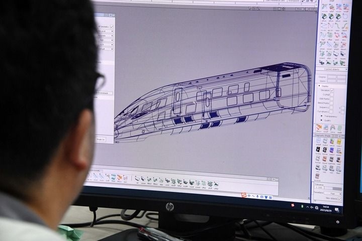 2023年8月29日,中車青島四方設計部門工作人員在進行車輛框架設計。新華社記者 李紫恒攝