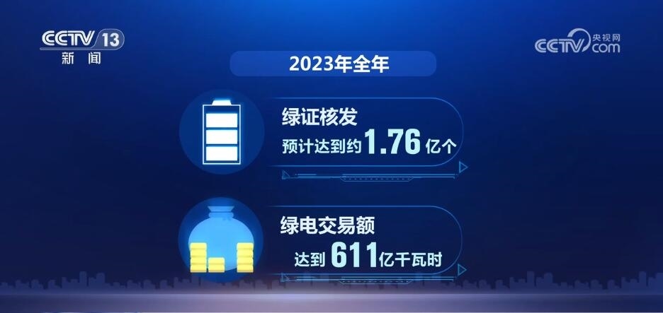 全覆蓋,是2023年我國(guó)綠電消費(fèi)的一大關(guān)鍵詞。通過給已建檔立卡的可再生能源發(fā)電項(xiàng)目全部核發(fā)綠證,我國(guó)成為全球最大的綠證供應(yīng)市場(chǎng)。全年綠證核發(fā)預(yù)計(jì)達(dá)到約1.76億個(gè),綠電交易額達(dá)到611億千瓦時(shí),分別是2022年的7.8倍和10.5倍。