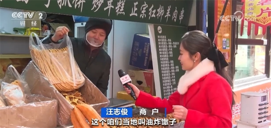 總臺(tái)記者 馬雅慧:今天一來(lái)到這里我就聞到了濃濃的香料味兒,大家看我身旁的這些都是青海特色的油炸年饃,當(dāng)?shù)厝艘步杏驼ü?。老板,我看這里款式各式各樣的都有,您能給我們介紹一下嗎?