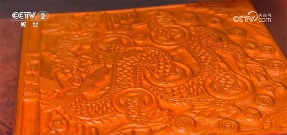 平陽木版年畫非遺傳承人 王軍:我現(xiàn)在手上拿的這一張就是龍年主推的一個福字年畫,主要以平陽木版年畫最傳統(tǒng)的圖案,以福字為主,突出龍的元素,最難的就是龍的龍鱗、龍須,線條特別細,雕刻的時候特別難。