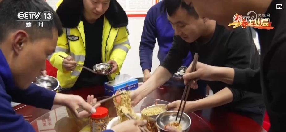 將失聯(lián)人員和車輛引導(dǎo)至國(guó)道后,大家驅(qū)車返回了救援站。從中午12時(shí)出發(fā),到晚上12時(shí)返回,12個(gè)小時(shí)的救援工作結(jié)束后,一碗熱騰騰的泡面是他們今天吃上的第一口熱乎飯。