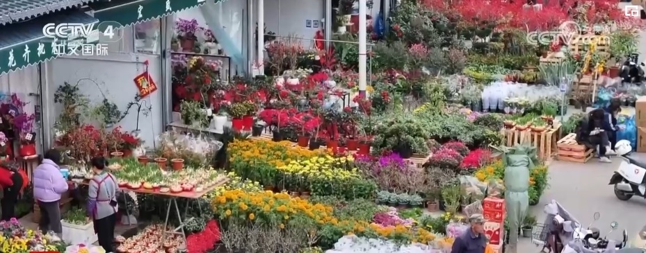 在福建漳州的花卉市場,品種多樣的花卉競相綻放。各式各樣的蝴蝶蘭、紅果累累的冬青、雍容華貴的大花惠蘭把花卉市場裝扮得年味兒十足。為喜迎龍年,花藝師還將花球雕刻出龍的造型,吸引不少消費(fèi)者的目光。市民們紛紛前來采購,迎接新年。