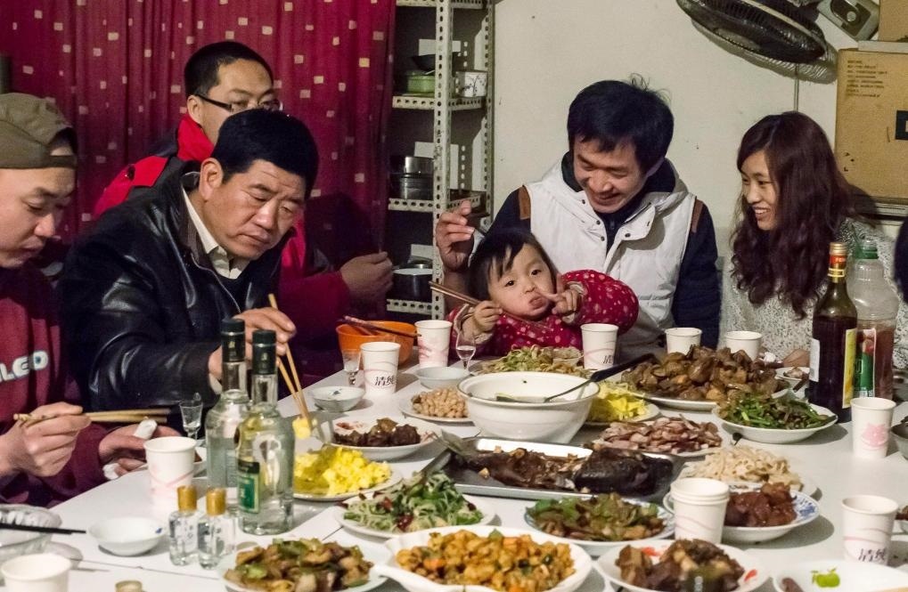 2003年1月31日,一家人在上海一家飯店吃年夜飯。