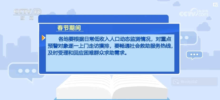 央視網(wǎng)消息:為了切實保障好春節(jié)期間困難群眾基本生活,民政部、財政部日前聯(lián)合發(fā)出通知,要求各地開展春節(jié)“送溫暖”活動,確保困難群眾度過溫暖祥和的春節(jié)。