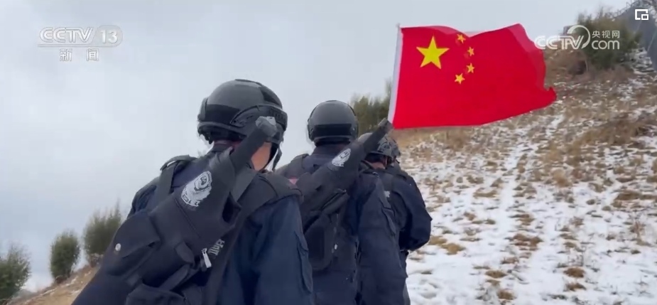 巡邏路有一半是蜿蜒崎嶇的山路,另一半則是陡峭的山坡和聳入云霄的直梯,巡邏一趟至少需要4個(gè)小時(shí)。在588號(hào)界碑旁,民警們舉行了升旗儀式,看著五星紅旗在南疆“云梯”上冉冉升起,每個(gè)人的臉上寫(xiě)滿自豪。
