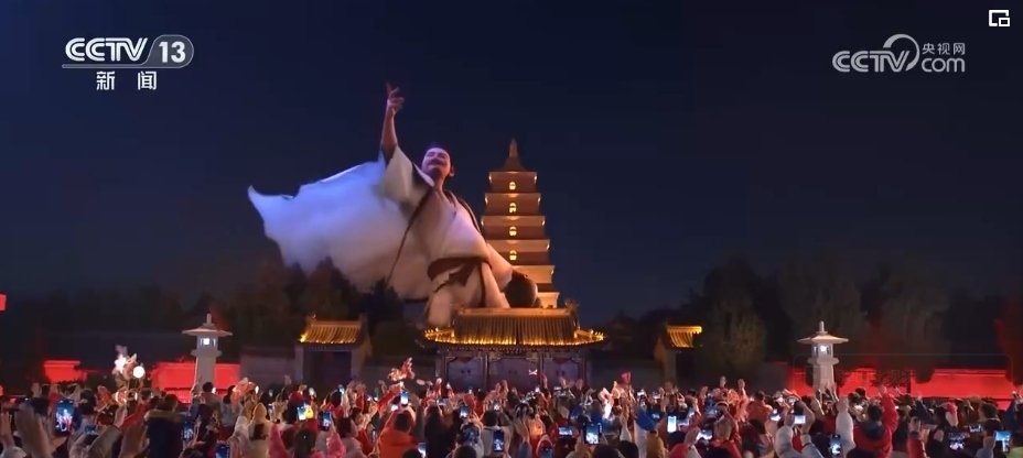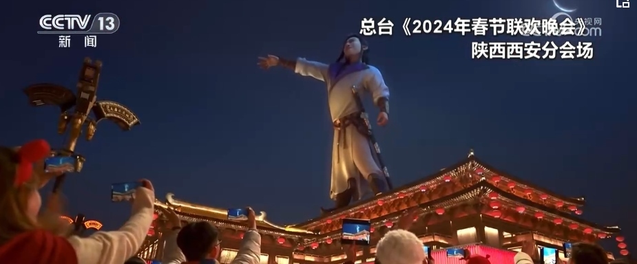 除夕當(dāng)晚9時,西安分會場《山河詩長安》篇章的“打開方式”讓人眼前一亮。在科技助力下,“詩仙”李白跨越歲月長河“穿越”而來,在煙火璀璨中,隨著熙熙攘攘的人群一起走進(jìn)西安城墻永寧門,走入千年后的耀眼長安。