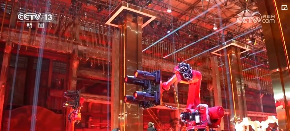 2024年中央廣播電視總臺春節(jié)聯(lián)歡晚會遼寧沈陽分會場上的8個重載工業(yè)機(jī)器人,原本是生產(chǎn)線上的重載工業(yè)機(jī)器人.春晚沈陽分會場導(dǎo)演組到達(dá)沈陽進(jìn)行第一次調(diào)研時,就有了將這些機(jī)器人融入到舞臺的念頭。