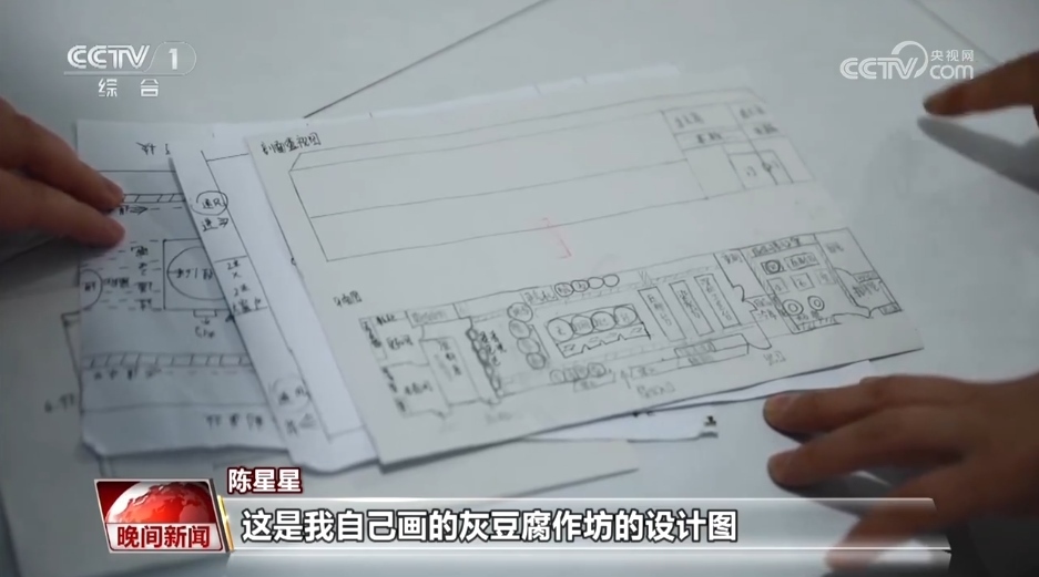 陳星星不斷改進(jìn)自己的作品,得到的關(guān)注越來越多,灰豆腐的銷路也越來越廣。眼下,陳星星還在忙活著一件大事情,她親自設(shè)計(jì)的豆腐工坊,馬上就要投入生產(chǎn)。