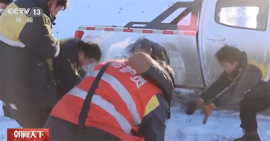 接到通知后,何陽(yáng)和工友們立即前往敖包梁隧道。汽車艱難行駛在白雪皚皚的鄂爾多斯高原上,遇到打滑路段只能推車前進(jìn)。