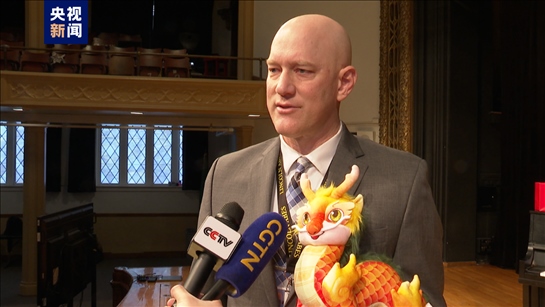 林肯中學(xué)的師生們還觀看了總臺(tái)制作的龍年春晚英語(yǔ)版??偱_(tái)北美總站負(fù)責(zé)人介紹了春節(jié)和春晚的年俗文化,回答同學(xué)們的提問(wèn),并向現(xiàn)場(chǎng)的所有師生贈(zèng)送龍年春晚吉祥物“龍辰辰”。校長(zhǎng)卡爾·霍塞斯代表林肯中學(xué)接受了總臺(tái)文創(chuàng)產(chǎn)品“春碗”及“五龍戲珠盤”。
