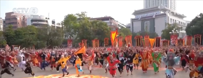 春節(jié)期間,河南靈寶市函谷關(guān)歷史文化景區(qū)舉行了一場(chǎng)新春大廟會(huì),“廟”趣橫生、年味兒十足。在函谷關(guān)關(guān)樓前舉行的一場(chǎng)“穿越快閃秀”的演出現(xiàn)場(chǎng),動(dòng)感的音樂、炫酷的舞姿“點(diǎn)燃”了廟會(huì)現(xiàn)場(chǎng)。據(jù)了解,2024函谷關(guān)新春大廟會(huì)將持續(xù)到正月十七,每天有80多場(chǎng)演出,《楚漢爭(zhēng)關(guān)》實(shí)景馬戰(zhàn)、《秦王點(diǎn)將》歷史情景劇、《拜老儀式》等劇目輪番上演。