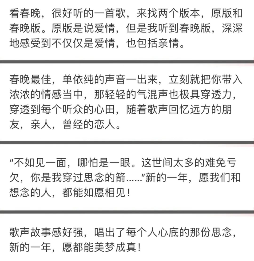 這首《不如見一面》迅速沖上各大音樂平臺的熱搜榜首位,“從春晚來的”網(wǎng)友涌進(jìn)評論區(qū),書寫起自己的故事。一首氣質(zhì)凄美的歌,為何能如此抓人,讓人忍不住反復(fù)“單曲循環(huán)”?