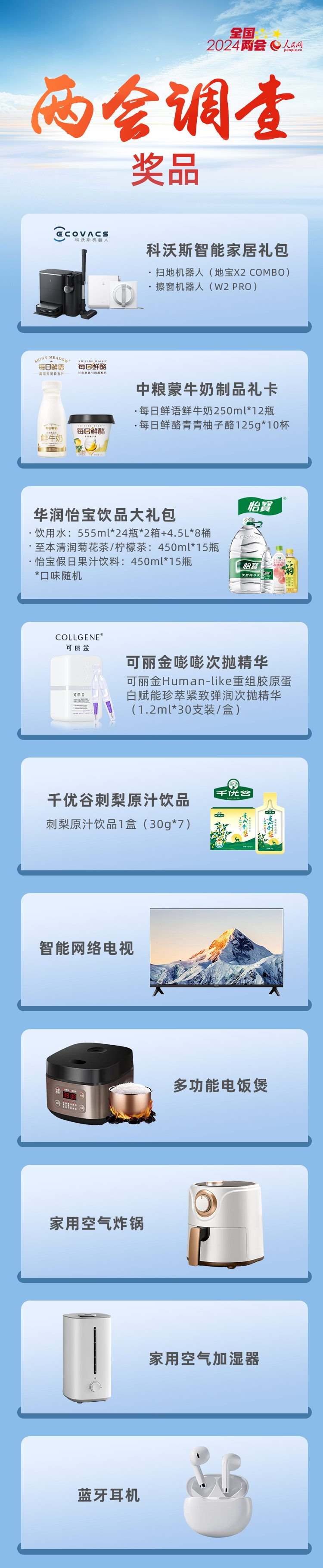 目前,調(diào)查還在火熱進(jìn)行,各界可繼續(xù)通過人民網(wǎng)全媒體通道參與本次調(diào)查。為感謝網(wǎng)友對全國兩會調(diào)查的支持,參與者還有機(jī)會抽取精美獎品。