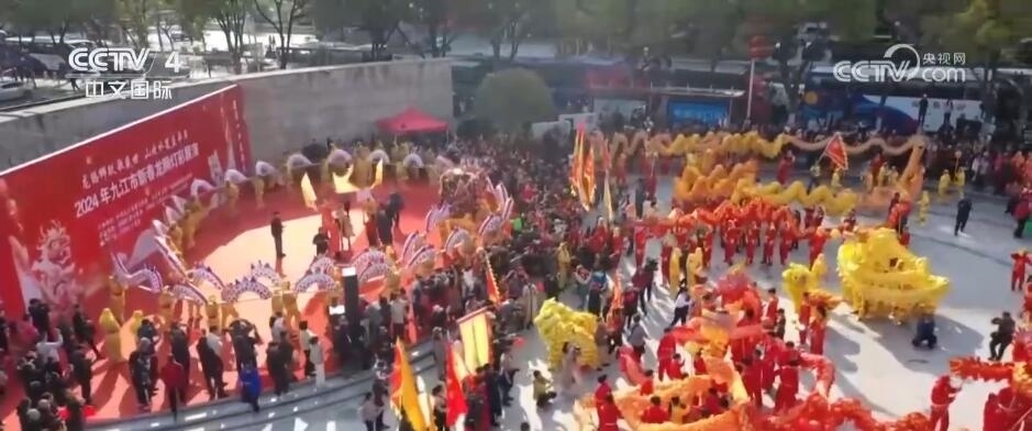 在江西九江的長(zhǎng)江國(guó)家文化公園城區(qū)段大中路上舉行了龍獅燈彩踩街活動(dòng),“巨龍”時(shí)而“翱翔騰飛”,時(shí)而輾轉(zhuǎn)騰挪,隨行的鼓樂(lè)齊鳴,新年火熱的氛圍依然不減。