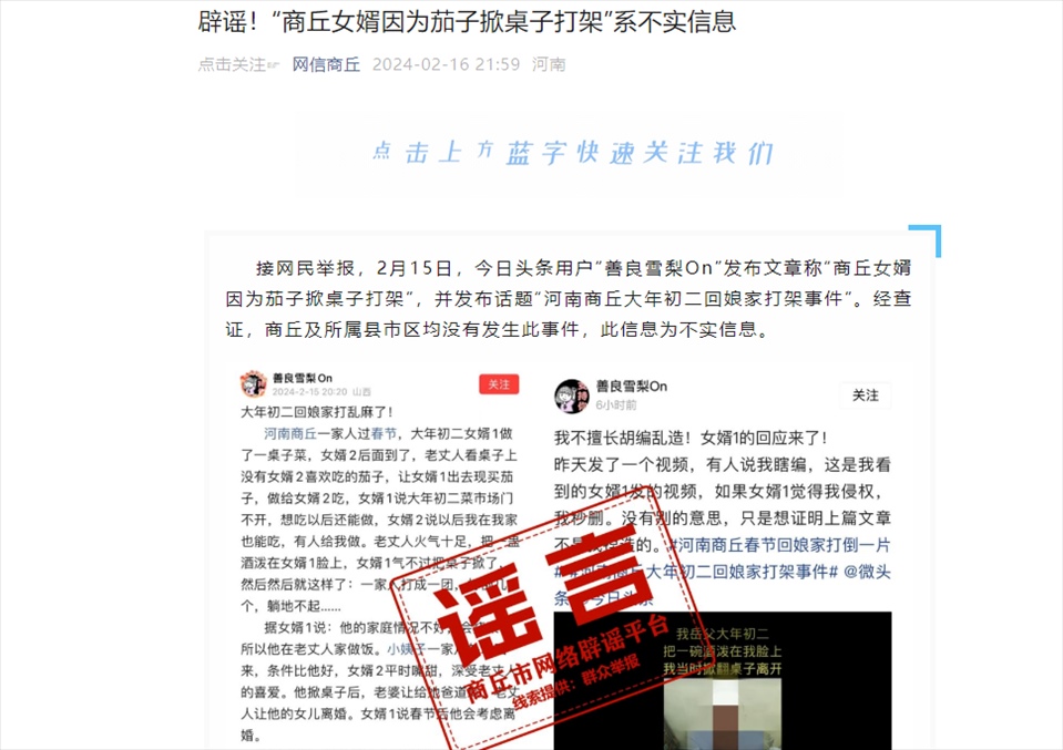 ·官方辟謠女婿因買茄子掀桌打架:不實信息,公安部門正在采取措施。