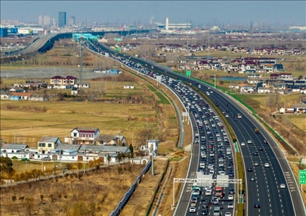 春節(jié)假期臨近尾聲,各地迎來返程高峰。圖為車輛行駛在京滬高速江蘇省淮安市淮安區(qū)境內(nèi)。