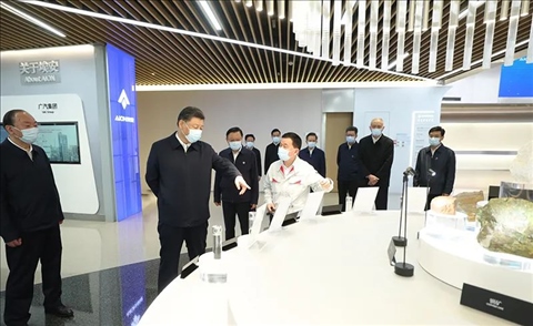 △2023年4月12日,習(xí)近平總書記在廣汽埃安新能源汽車股份有限公司考察。