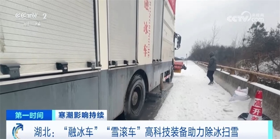 這是湖北隨縣引進的“雪滾車”,作業(yè)時,前端滾軋利用高密度、高彈性的鋼絲滾刷高速旋轉(zhuǎn),先把表層積雪、浮冰甩出車道,再用滾軋內(nèi)圈的沖擊輥輪把冰打碎,最后由滾刷把殘雪、殘冰掃向路邊。