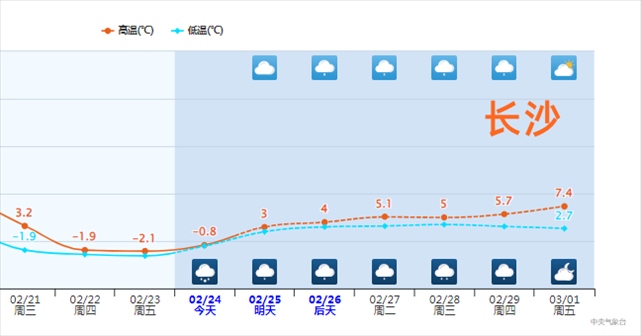 比如長(zhǎng)沙,自2月21日14時(shí)以后,氣溫持續(xù)在0℃以下運(yùn)行,已超過(guò)70個(gè)小時(shí),2月下旬連續(xù)如此長(zhǎng)的低溫,幾乎前所未見(jiàn)。2月的最后幾天,長(zhǎng)沙最高氣溫將不超過(guò)6℃,今天甚至不到0℃,常年同期平均最高氣溫在10℃以上,比常年冷得多。