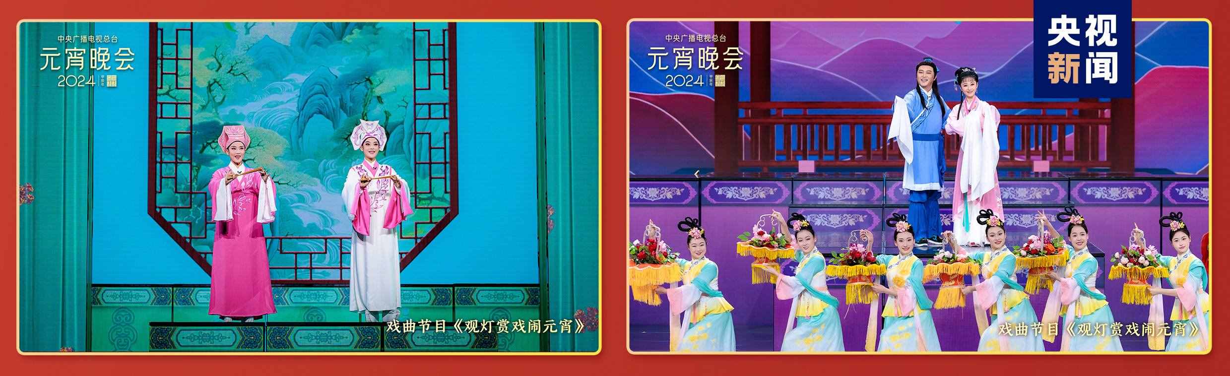 戲曲節(jié)目中,伴隨著“火樹(shù)千春妍,元夕月正圓,歡歌笑語(yǔ)喧”的戲腔戲韻,閩劇戲歌首次亮相總臺(tái)元宵晚會(huì)。其他劇種還玩上了跨界表演,熟悉的旋律響起,站在舞臺(tái)上的表演者卻是令人直呼意外的“混搭”組合。陳麗君與黃齡攜手帶來(lái)越劇《梁?!愤x段,潘檸?kù)o與沙溢共唱黃梅戲《天仙配》,在上元之夜演繹傳世愛(ài)情故事,“戲曲真的出圈了”“誰(shuí)說(shuō)年輕人不聽(tīng)?wèi)颍肋h(yuǎn)為經(jīng)典唱段打call”。