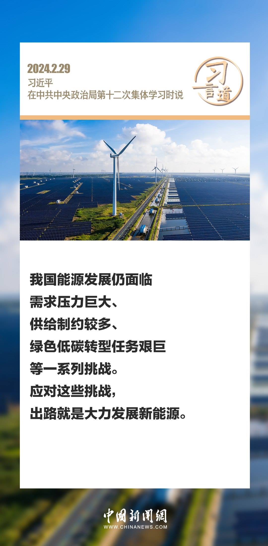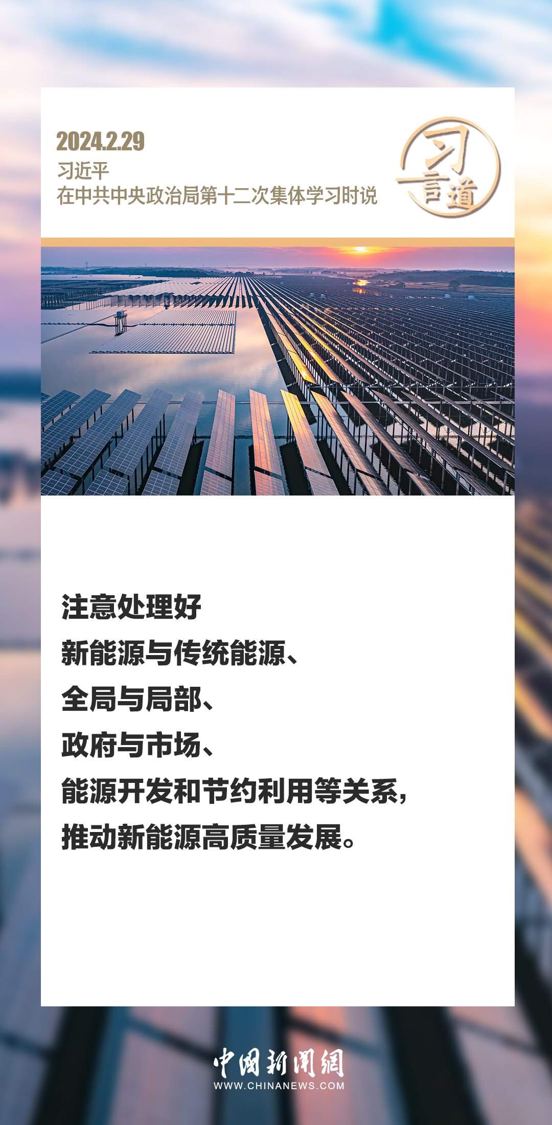 中共中央政治局2月29日下午就新能源技術(shù)與我國的能源安全進(jìn)行第十二次集體學(xué)習(xí)。中共中央總書記習(xí)近平在主持學(xué)習(xí)時強(qiáng)調(diào)——