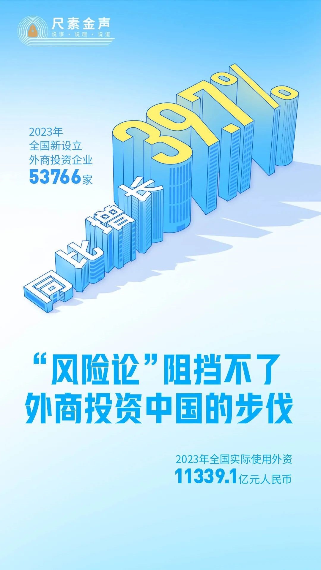 事實(shí)證明,任何抹黑誤導(dǎo)都阻擋不了外商來華投資步伐,中國制造展現(xiàn)出的強(qiáng)大韌性、活力和潛力,不會(huì)因花樣翻新的“唱衰”論調(diào)而改變。2023年,全國實(shí)際使用外資金額11339.1億元人民幣,仍處歷史高位;全國新設(shè)立外商投資企業(yè)53766家,同比增長(zhǎng)39.7%。中國一直都是外商投資興業(yè)的沃土。