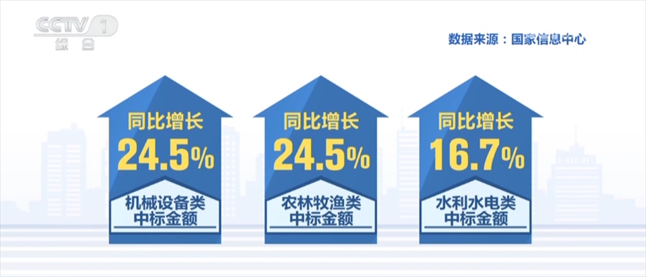 在投資方面,今年1、2月份,與工程項目投資立項、建設(shè)相關(guān)的指標(biāo)較去年同期增長明顯。國家信息中心監(jiān)測數(shù)據(jù)顯示,今年1—2月全國項目投資中標(biāo)金額同比增長9.1%。其中,機(jī)械設(shè)備類、農(nóng)林牧漁類、水利水電類等中標(biāo)金額分別同比增漲24.5%、24.5%、16.7%。可以看出,在多項支持政策的共同推動下,我國制造業(yè)重點行業(yè)投資持續(xù)向好,民生補(bǔ)短板投資力度不斷加大。?