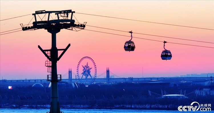 2024年3月8日,哈爾濱,松花江畔現(xiàn)絢麗晚霞,美景如畫(huà)。
