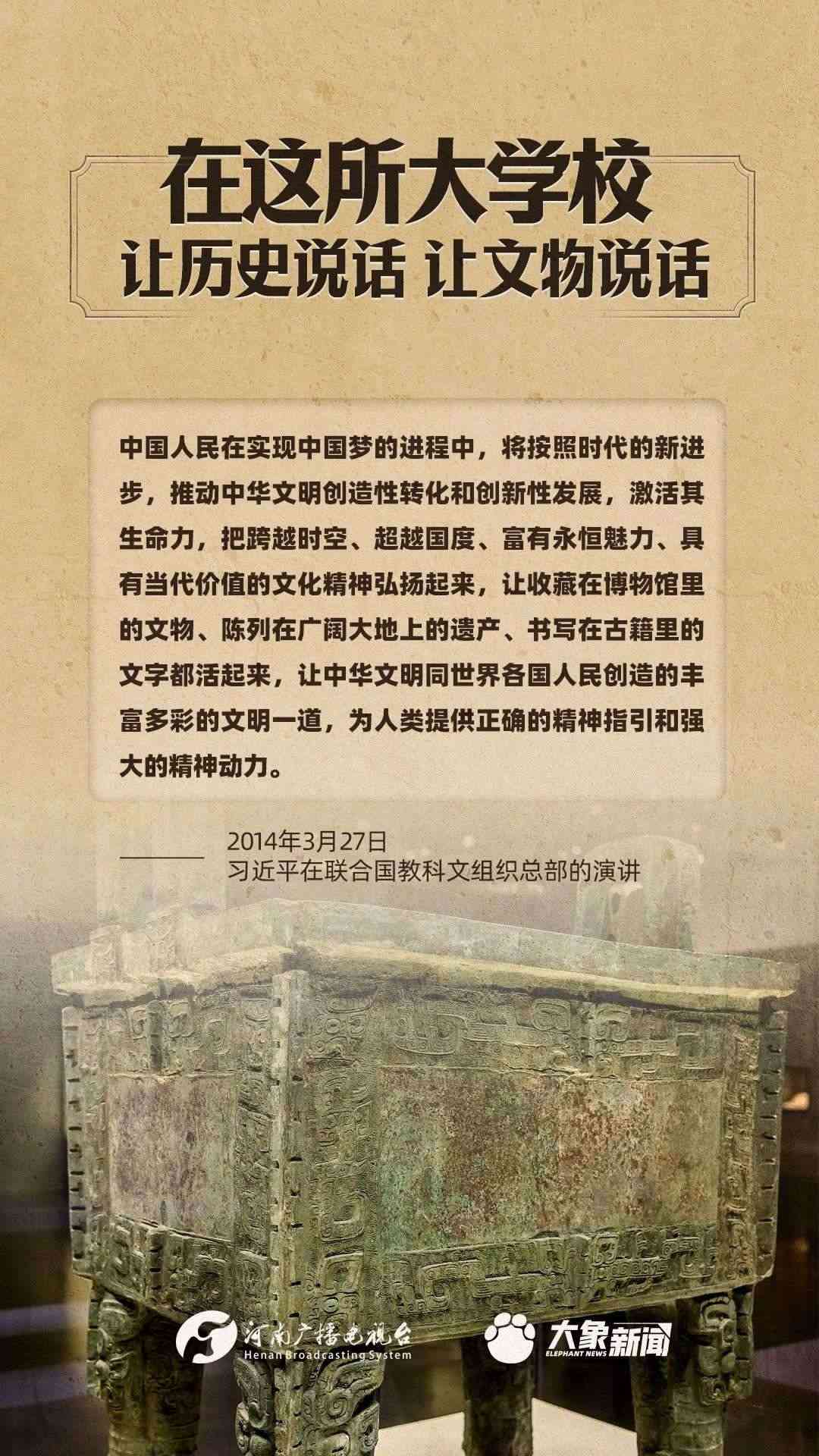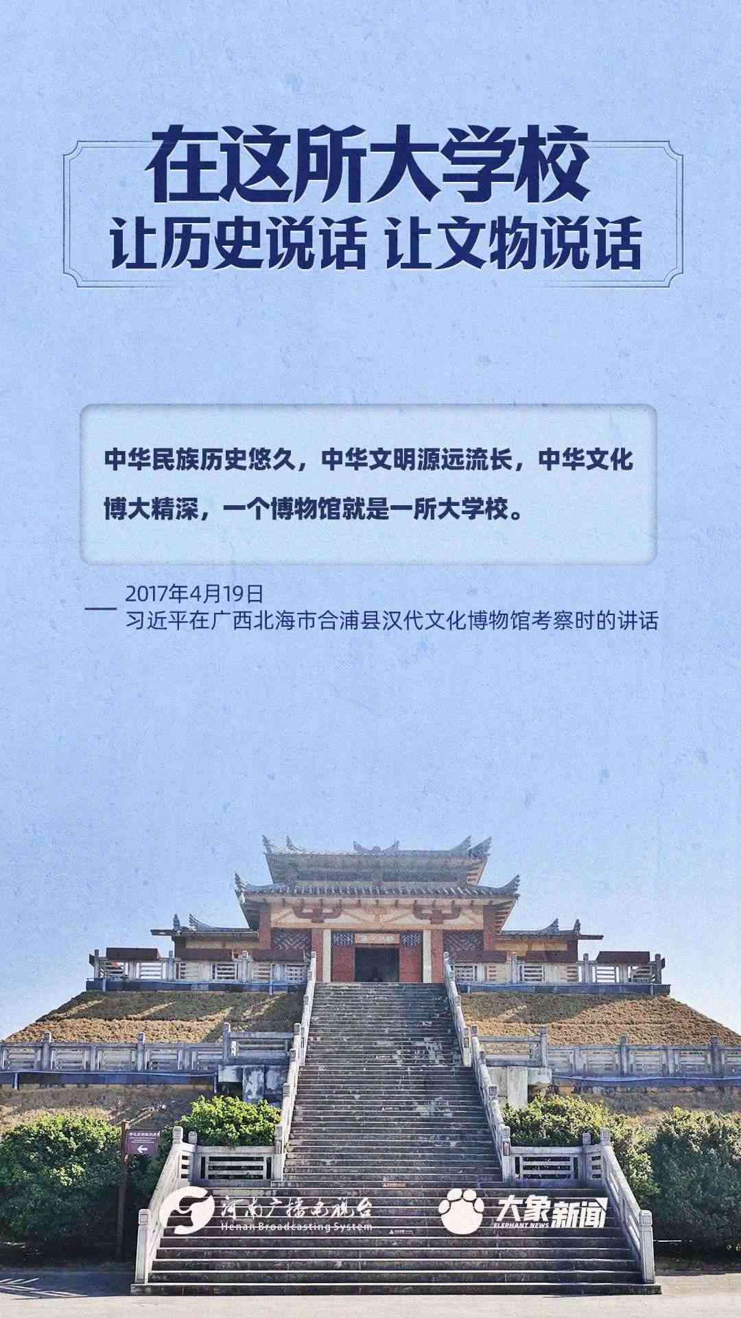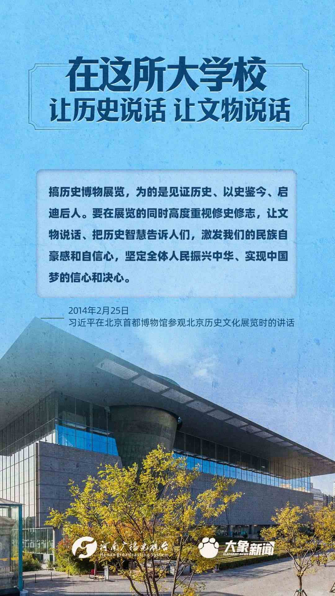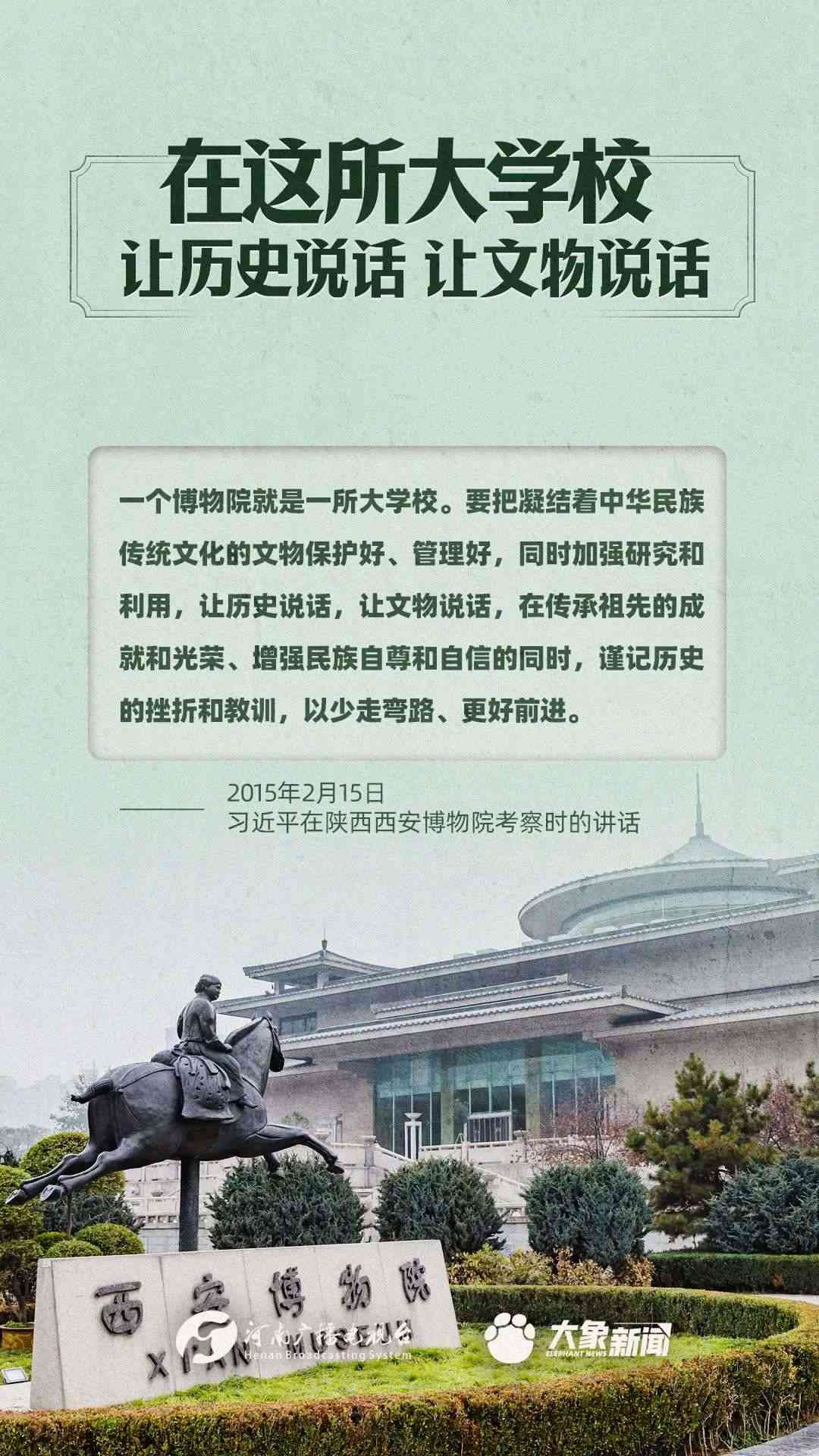 習(xí)近平總書記一直高度重視博物館工作,多次作出重要講話,強調(diào)“一個博物院就是一所大學(xué)?!?,指出“讓歷史說話,讓文物說話”,要求“守護(hù)好、傳承好、展示好中華文明優(yōu)秀成果”等等,金句連連。大象新聞進(jìn)行了認(rèn)真梳理,邀您一起學(xué)習(xí)。
