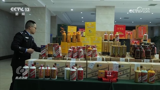 曾光:“我們在全國五個省市開展了相關全面收網工作,一共抓獲犯罪嫌疑人54名,搗毀生產灌裝窩點三個、銷售經營場所三個、倉儲倉庫三個,現場查扣成品的知名假酒一共接近11600瓶。”