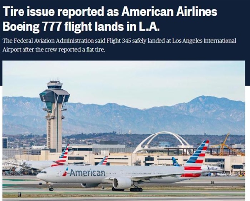 ·波音再出安全事故!美國航空一架波音777飛機疑似起飛時“爆胎”。