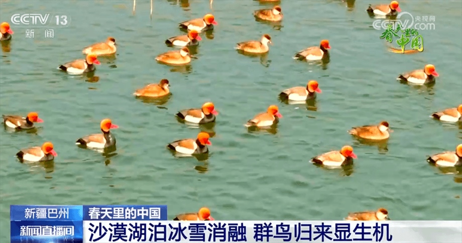 伴隨著陣陣?guó)B鳴,我們來(lái)到新疆巴州尉犁縣羅布淖爾國(guó)家濕地公園,碧綠的水面上,成群結(jié)隊(duì)的赤嘴潛鴨、赤麻鴨等鳥(niǎo)類時(shí)而用翅膀拍打水面展翅飛翔,時(shí)而三五成群在水中喜戲、覓食,群鳥(niǎo)與黃沙、碧水、葦叢、胡楊交相輝映,形成一幅生機(jī)勃勃的春日畫(huà)卷。