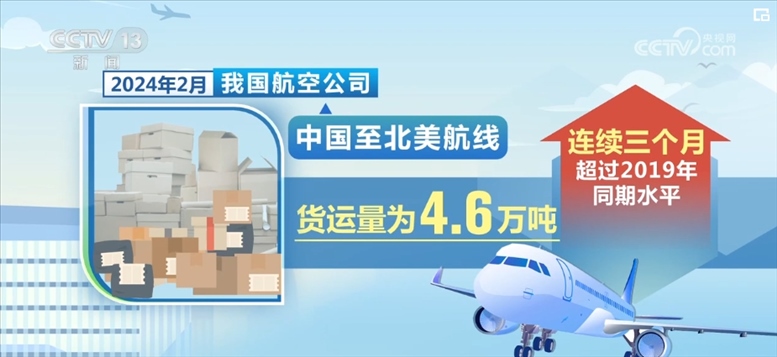 受跨境電商等多因素帶動(dòng),2024年以來(lái),我國(guó)至海外主要貨運(yùn)市場(chǎng)均表現(xiàn)良好。2月,我國(guó)航空公司在中國(guó)至歐洲航線完成貨運(yùn)規(guī)模最大,達(dá)9.2萬(wàn)噸,占比達(dá)42.3%;至北美航線貨運(yùn)量為4.6萬(wàn)噸,連續(xù)3個(gè)月超過(guò)2019年同期水平;與共建“一帶一路”國(guó)家之間完成貨郵運(yùn)輸量6.6萬(wàn)噸,占比超過(guò)三成,較2019年同期增長(zhǎng)143.8%。