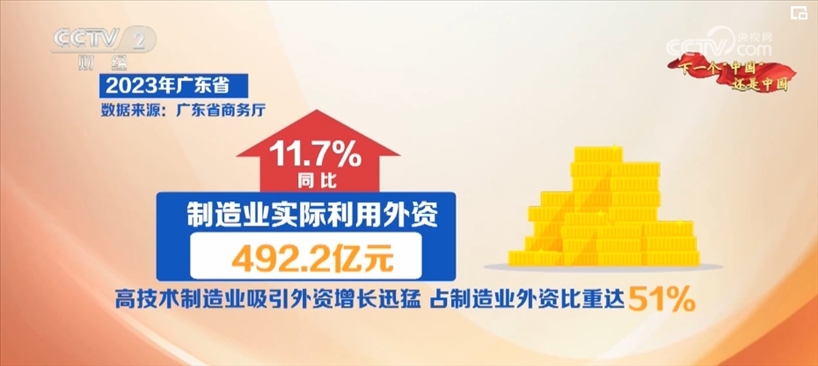 廣東省商務(wù)廳數(shù)據(jù)顯示,2023年全省新設(shè)制造業(yè)外資企業(yè)1078家,同比增長29.9%;制造業(yè)實(shí)際利用外資492.2億元,同比增長11.7%。其中,高技術(shù)制造業(yè)吸引外資增長迅猛,占制造業(yè)外資比重達(dá)51%。