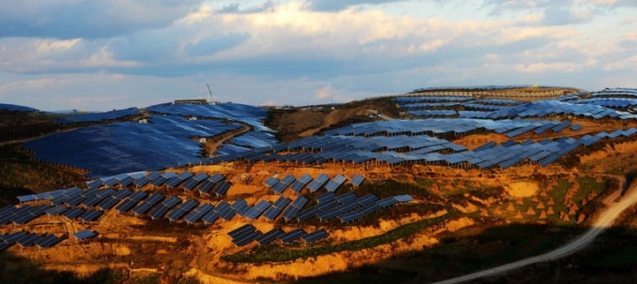 在昆明市石林縣北大村,由23萬塊光伏板組成的56個光伏發(fā)電方陣形成一道獨特景觀。由國家電投云南國際電力投資有限公司建設(shè)的這個光伏電站,年發(fā)綠色電能達7800萬度。