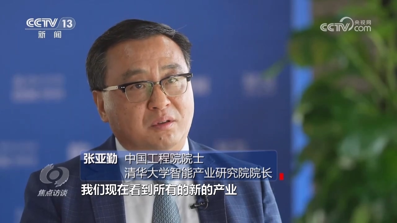 中國工程院院士、清華大學(xué)智能產(chǎn)業(yè)研究院院長張亞勤:“現(xiàn)在看到所有新產(chǎn)業(yè),不管是新能源、新材料還有教育、醫(yī)療、金融、交通,都有一個(gè)新的底座,這個(gè)新底座就是人工智能。一個(gè)特別聰明的‘大腦袋’,這個(gè)‘大腦袋’在所有領(lǐng)域都可以用到,所以能夠大幅度提高生產(chǎn)力?!?/p>