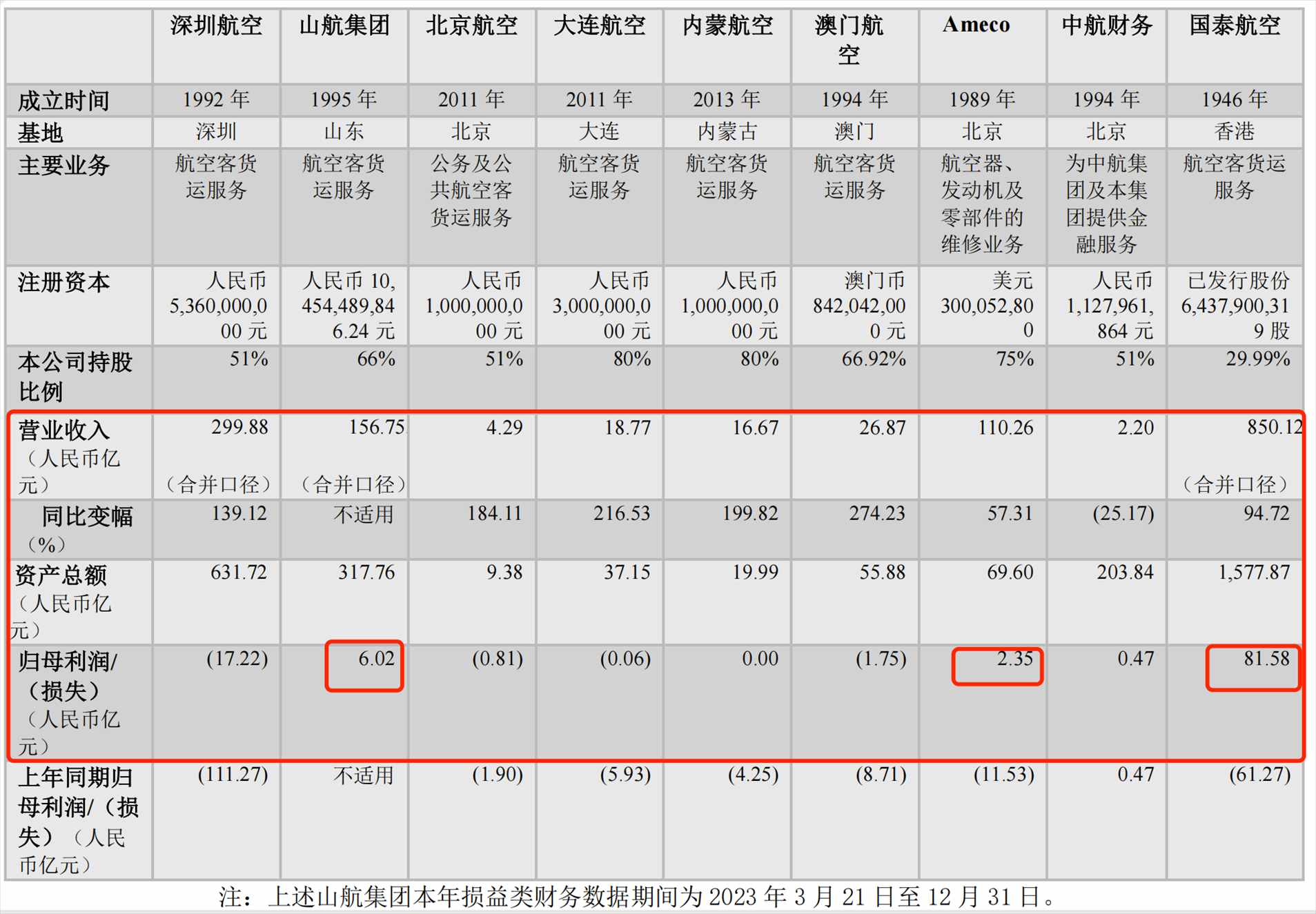 具體來(lái)看國(guó)航,分別控股和持股的山航集團(tuán)與國(guó)泰航空實(shí)現(xiàn)盈利。山航集團(tuán)去年?duì)I收156.75億元,歸母凈利潤(rùn)為6.02億元;國(guó)泰航空去年?duì)I收850.12億元,同比增超九成,歸母凈利潤(rùn)為81.58億元,上年同期為虧損61.27億元;內(nèi)蒙古航司實(shí)現(xiàn)營(yíng)收16.67億元,同比增近2倍,歸母凈利潤(rùn)為0元,上年同期為虧損4.25億元。航空器維修公司Ameco去年?duì)I收110.26億元,同比增57.31%,實(shí)現(xiàn)歸母凈利潤(rùn)為2.35億元,去年同期為虧損11.53億元。