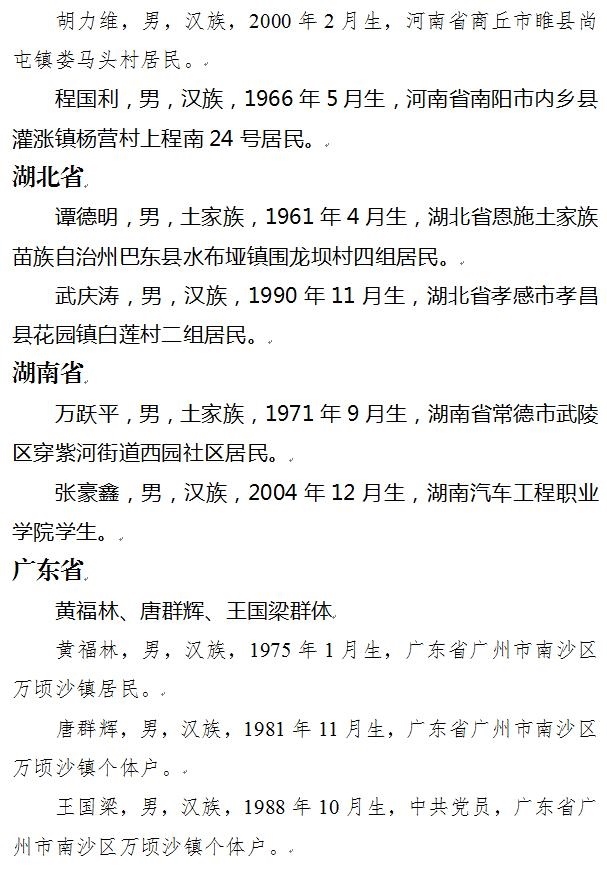 上榜勇士中,有舍棄價(jià)值幾十萬元蟹籠海中救人的沈華忠;有在深水中連救兩人的花甲老人程國利;有在斷橋處攔車避免更多事故發(fā)生的黃福林、唐群輝、王國梁群體;有阻止兇犯持刀行兇的醫(yī)生單國際、韋仲謀;有從15米高的橋上跳水救人的外賣小哥陳迎博……更有在水中多次救人英勇犧牲的19歲小伙李政;為搶險(xiǎn)救火獻(xiàn)出生命的鄧璞、項(xiàng)姚興、吳祥奇;有進(jìn)入沼氣井救人不幸遇難的張生賢……勇士們的事跡震撼人心、催人奮進(jìn),他們不怕困難和艱險(xiǎn),沖鋒在前、見義勇為,用實(shí)際行動(dòng)傳承和弘揚(yáng)了中華民族傳統(tǒng)美德,踐行了社會(huì)主義核心價(jià)值觀。