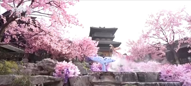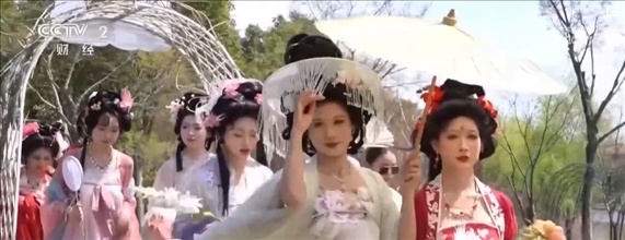 在江蘇常州,百萬(wàn)株郁金香競(jìng)相開(kāi)放。櫻花、玉蘭、垂絲海棠等花木也開(kāi)滿(mǎn)山谷,一簇簇粉白的花朵隨微風(fēng)搖曳,宛若世外桃源。伴著音樂(lè),十二花神身著漢服踏春而來(lái),構(gòu)成本次花朝節(jié)一道亮麗的風(fēng)景線(xiàn)。