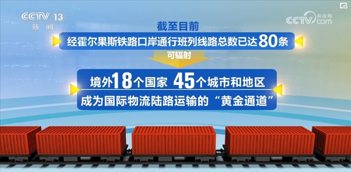 記者從霍爾果斯鐵路口岸了解到,2016年以來(lái)到2024年3月底,經(jīng)霍爾果斯海關(guān)監(jiān)管的中歐(中亞)班列總量已超過(guò)3.5萬(wàn)列,通行班列線(xiàn)路總數(shù)達(dá)80條,可輻射境外18個(gè)國(guó)家、45個(gè)城市和地區(qū)。
