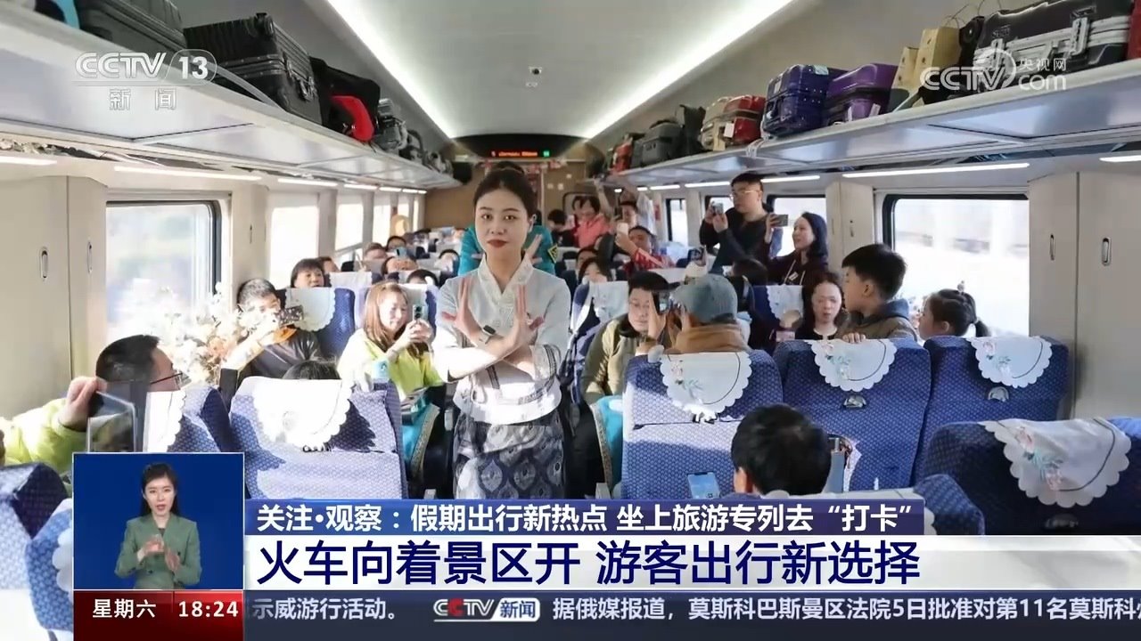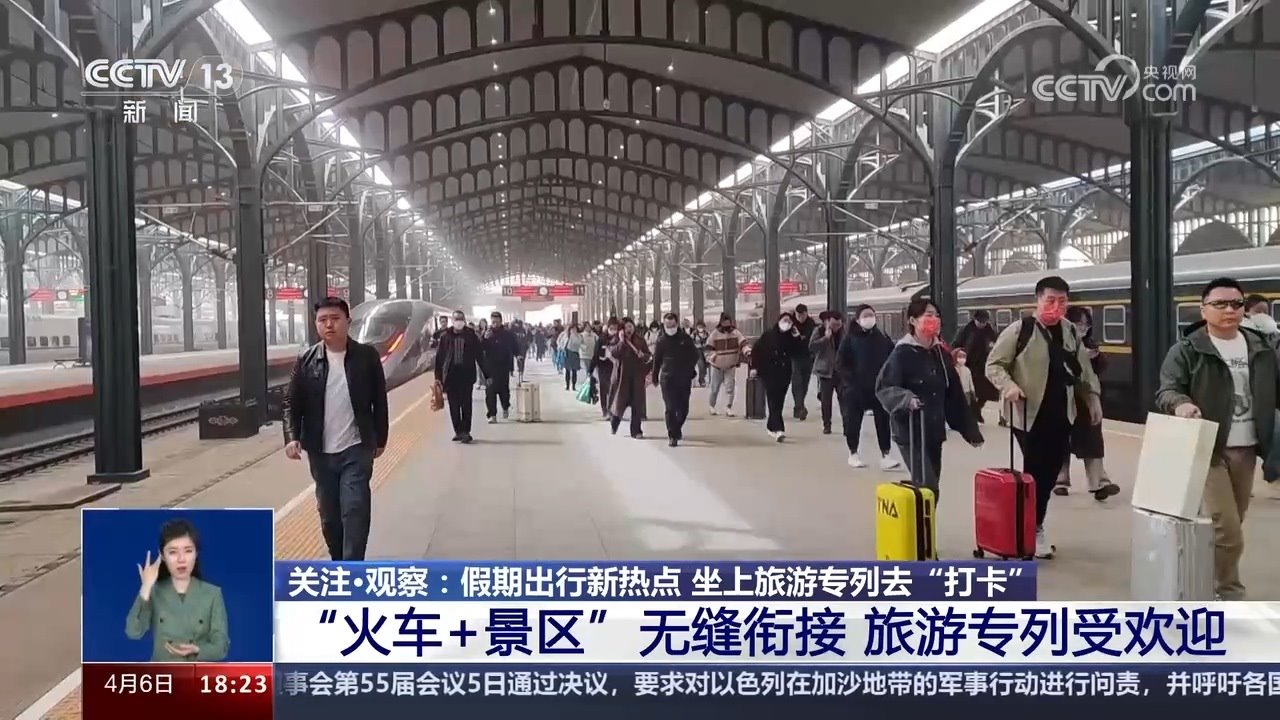 央視網(wǎng)消息:清明春花放,踏青好時(shí)節(jié)。坐著火車去旅行,縱跨千山,橫飛萬(wàn)水,用速度與激情串聯(lián)美景。今年清明假期第一天也就是4月4日,全國(guó)鐵路發(fā)送旅客1853.6萬(wàn)人次,創(chuàng)今年以來(lái)單日旅客發(fā)送量新高。以網(wǎng)紅城市、網(wǎng)紅景區(qū)為目的地的客流增幅明顯,各地增開(kāi)的臨客列車也瞄準(zhǔn)了游客“打卡地”。坐上旅游專列去旅行,可以給移步換景的美好出游心愿帶來(lái)多少種可能呢?進(jìn)入今天的關(guān)注觀察。