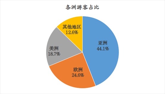 一、近程市場(chǎng)恢復(fù)良好。港澳臺(tái)地區(qū)游客恢復(fù)速度較快,合計(jì)為9.5萬(wàn)人次,恢復(fù)到2019年的80.1%。游客占比方面,亞洲游客(不包括港澳臺(tái)地區(qū))占比為44.1%,較2019年提升7.2個(gè)百分點(diǎn),東南亞地區(qū)游客恢復(fù)情況最好,其中主要客源國(guó)為馬來(lái)西亞、泰國(guó)、新加坡。