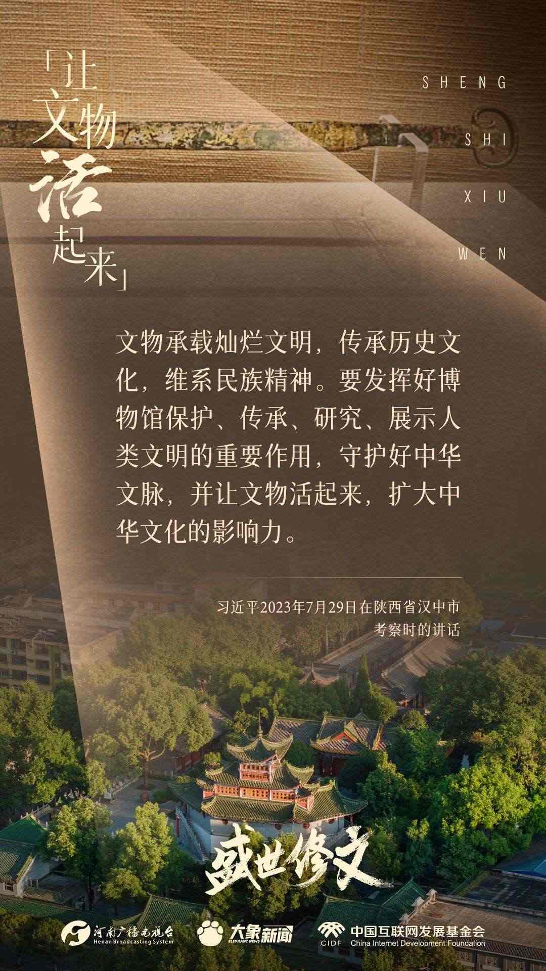 今天推出:習(xí)近平文化思想金句之《盛世修文|讓文物活起來(lái)》