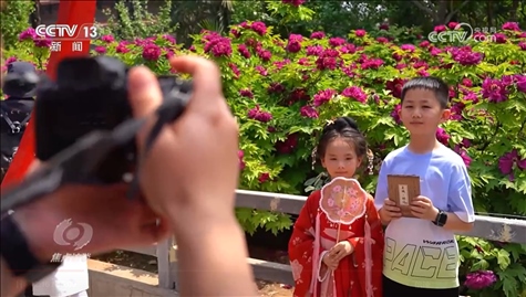 王鑫給女兒買了漂亮的漢服,還配上了牡丹花傘。穿著漢服看牡丹,幾乎成為游客的必選項(xiàng)目。牡丹園里,隨處可見(jiàn)身穿漢服的游人打卡拍照。吃著牡丹造型冰激凌逛文創(chuàng)紀(jì)念品,牡丹鮮切花、牡丹扇面、牡丹造型的飾品讓游客直呼喜愛(ài)。