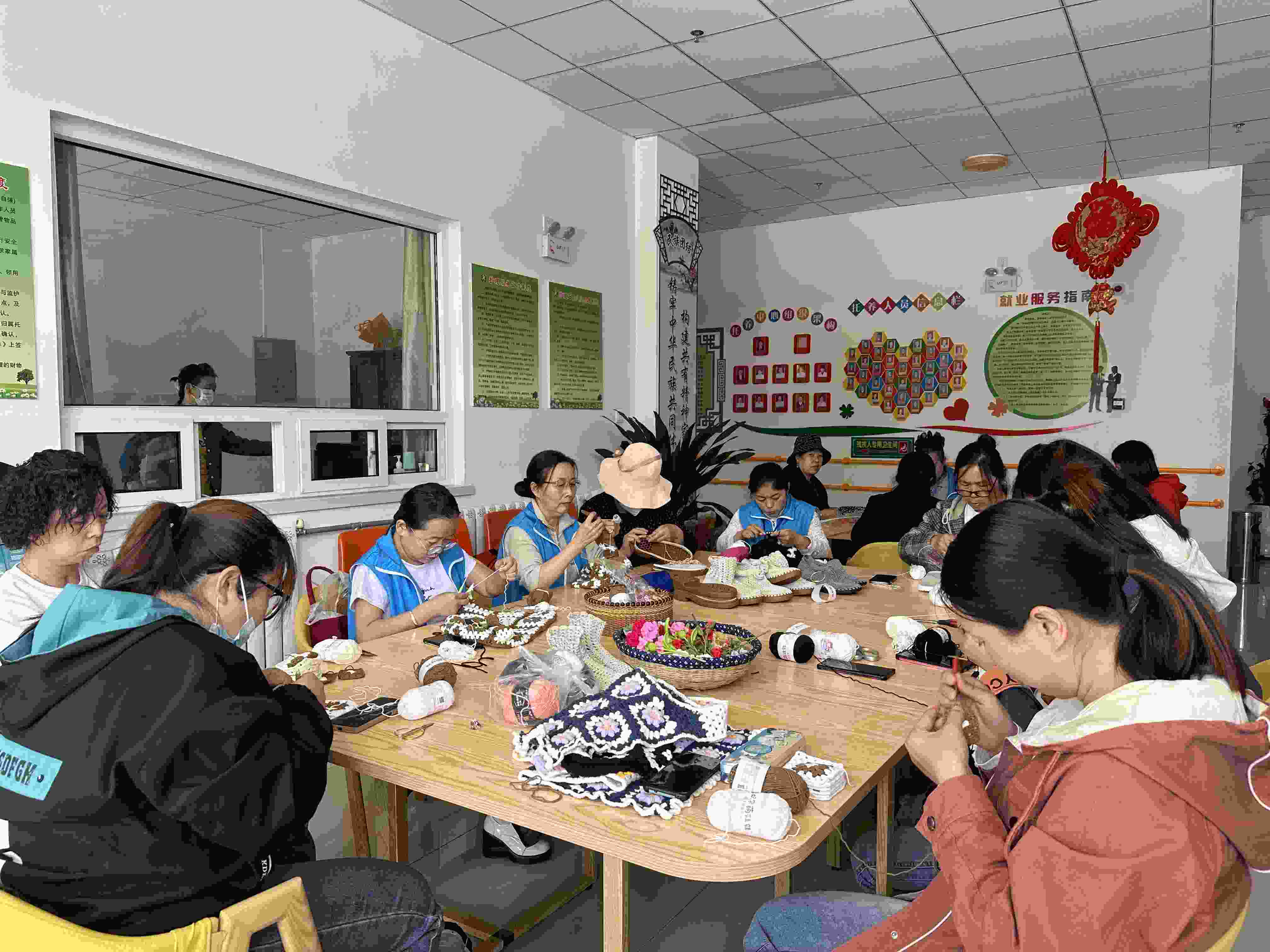 走進(jìn)青銅峽市黃河樓社區(qū)的李秋梅委員會(huì)客室,一進(jìn)大門(mén),就看到不少家庭婦女正忙碌著制作手工藝品。