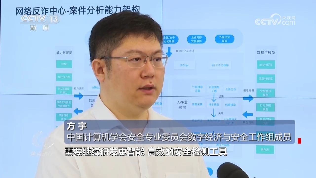 方宇:“下一步,針對涉詐APP的發(fā)現,需要繼續(xù)研發(fā)更智能、高效的安全檢測工具,建立涉詐APP的黑名單數據庫。另外,結合一些新型、智能化的技術手段,通過對網絡流量分析,及時發(fā)現詐騙流量,并通過公安、網信、金融、市場監(jiān)管等部門進一步加強聯(lián)動、信息及時共享、及時進行阻斷,多措并舉,共同努力,形成合力,打擊涉詐APP?!?/p>