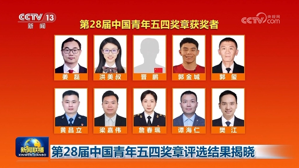 央視網(wǎng)消息(新聞聯(lián)播):在五四青年節(jié)到來之際,第28屆中國青年五四獎章評選結(jié)果揭曉。