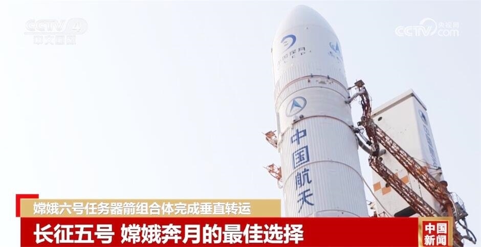 嫦娥六號任務(wù)器箭組合體完成垂直轉(zhuǎn)運(yùn)