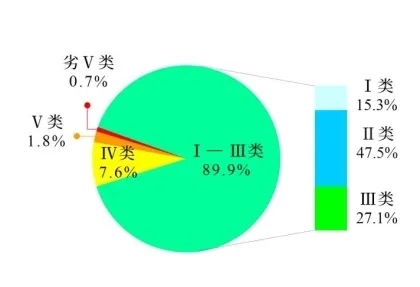 1—3月全國(guó)地表水水質(zhì)類別比例